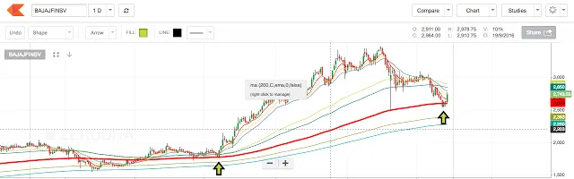 3. To make our case stronger, the price has bounced off the 200 days EMA. This is generally a hotspot for the institutional buyer. The last time price hit its 200 day EMA, the price rocketed from 1762 to 3480.