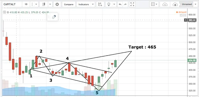 5. For the short term trader, there can be an upside of 7% from the cmp of 434.55 to achieve a target of 635. The ideal entry from this trade should have been around 340, however, one can make a decent profit in a short period of time of few days.
