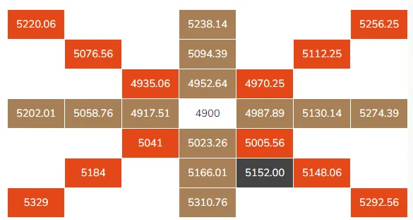 This calculator helps traders identify key support and resistance levels in the market based on a geometric grid pattern.