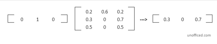 The result of the multiplication gives you the second row of the Transition Matrix. Do note that We are not diving deep into the formulas of matrix multiplication.
