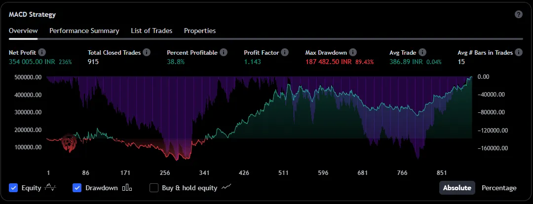 This script provides a solid foundation for backtesting the Positional MACD Crossover Strategy in TradingView. We have already discussed the strategy in the last chapter.