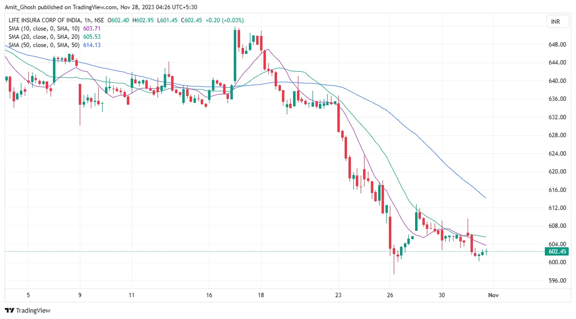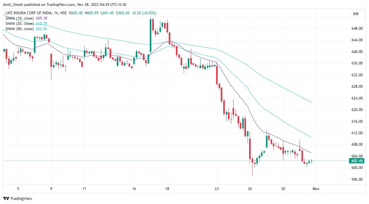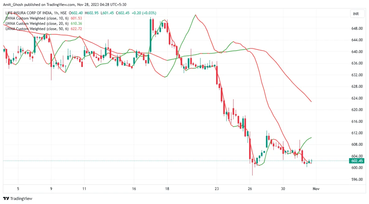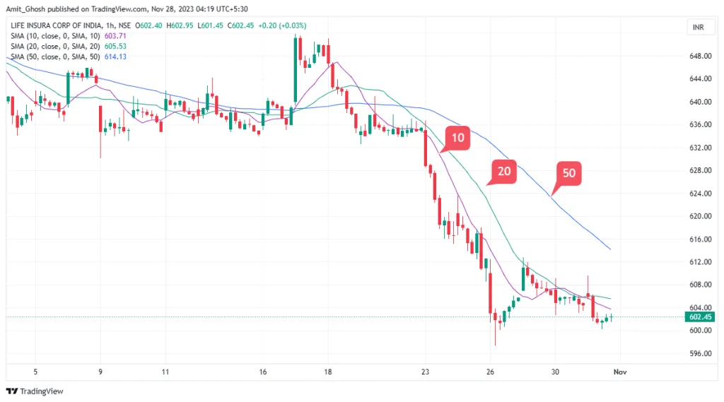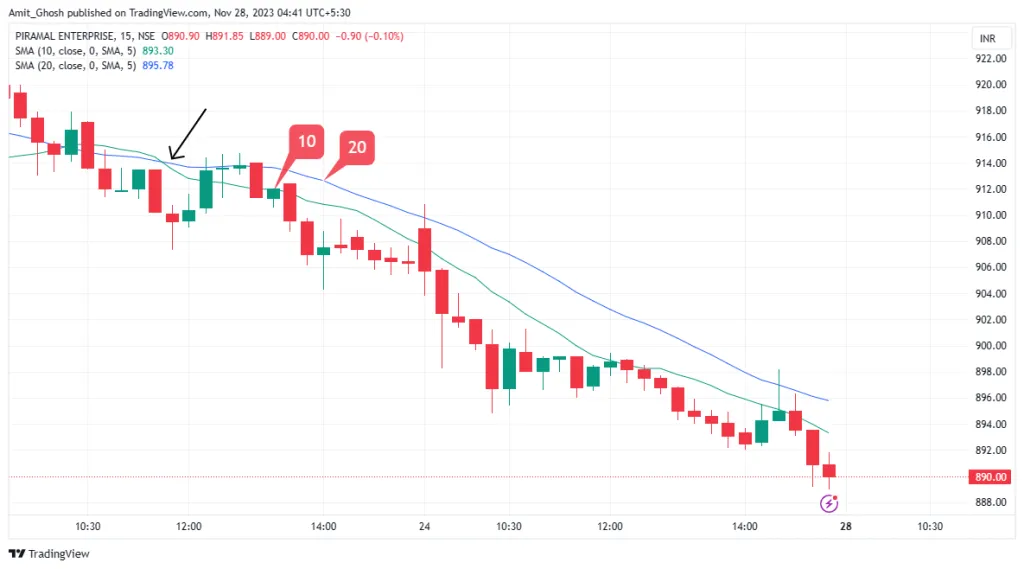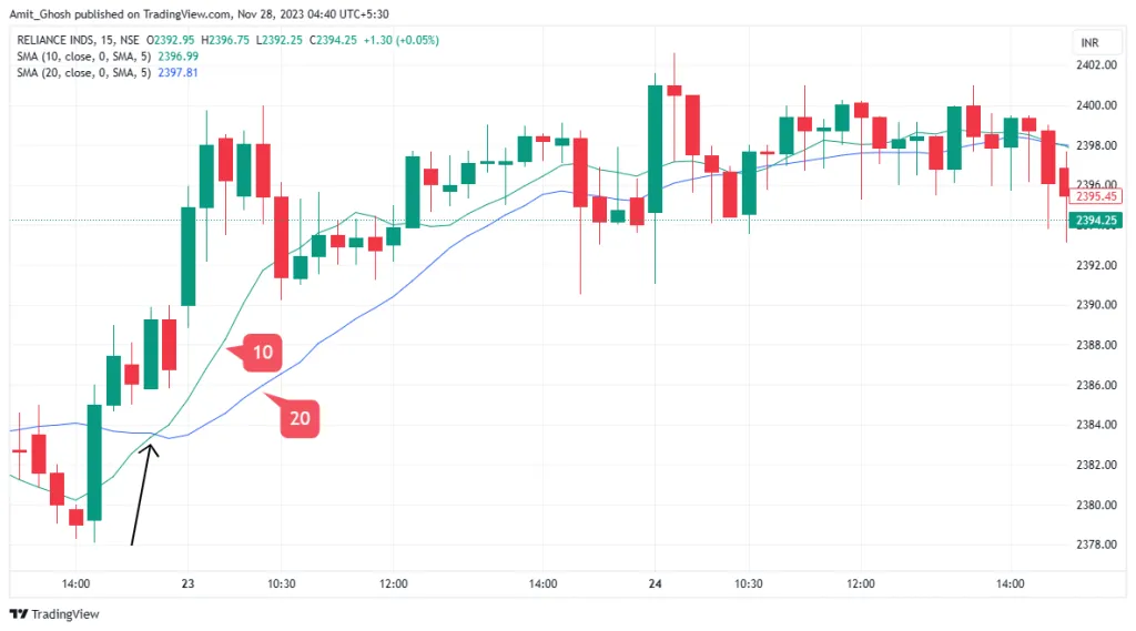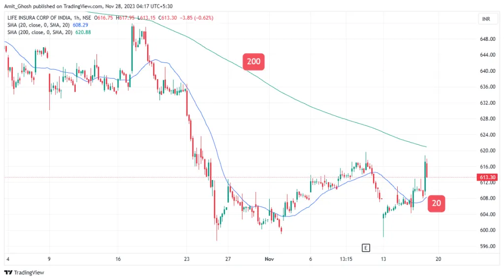 From the chart, you can see a 20-period moving average and a 200-period moving average.