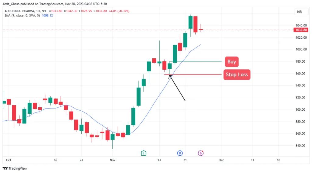 In an uptrend, you enter into a long trade when the price touches the moving average, which acts as support. You put your stop loss underneath the moving average.