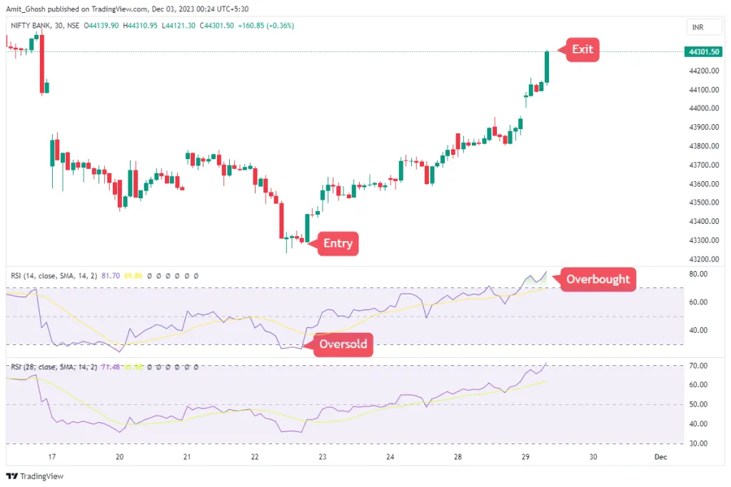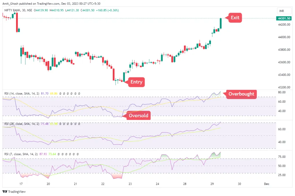 If we had used 7 period RSI for our trading, We would have exited the trade lot early.