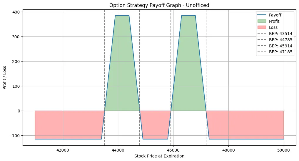 Whether it’s called a Bactrian Camel, Fat Batman, or Double Plateau Spread, the essence of the strategy remains in its distinctive twin-peak profit potential.