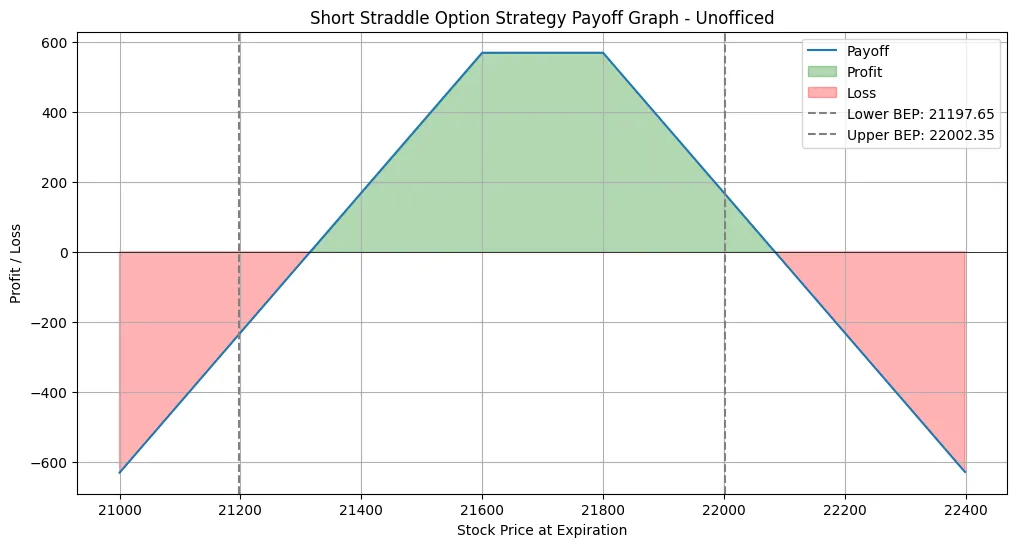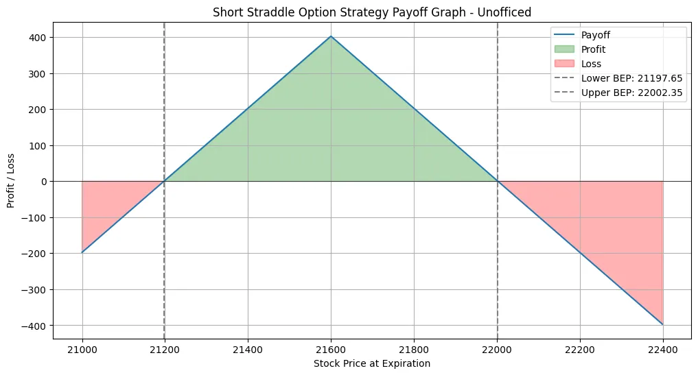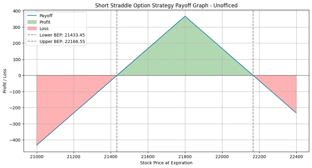 This is the payoff graph of 21600 straddle in the range of 21000-22400.