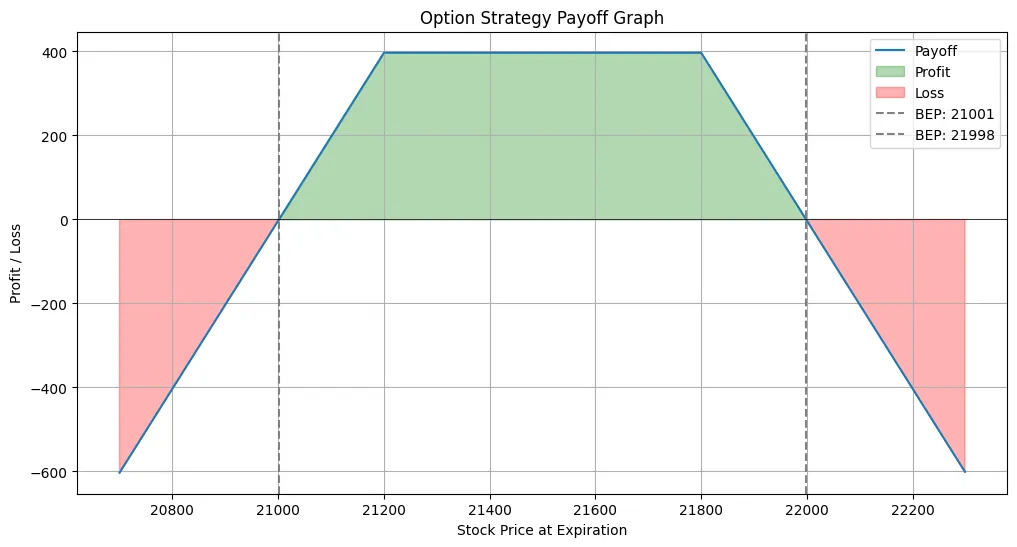 So, here is the payoff graph in the range of 20700 and 22300 –