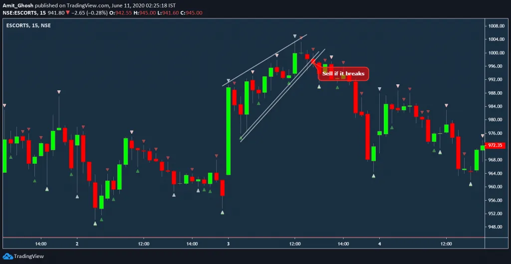 In the previous chart as you can see, How the tension builds up over Escorts. What follows next is a massive breakdown.