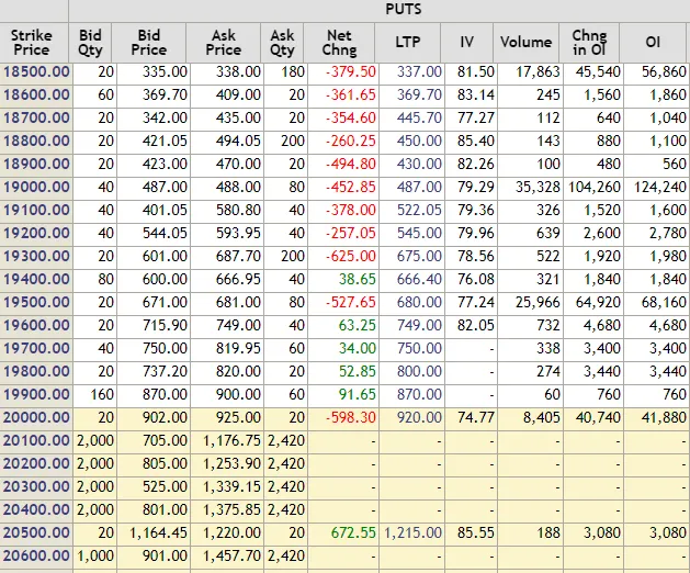 BankNIFTY’s last traded price is 19913.60. The above price is from an option chain[2] provided by the National Stock Exchange(NSE).