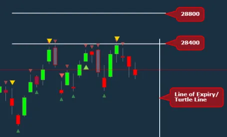 Imagine this scenario: You sell a contract for the BN (Bank NIFTY) 6th Sept 28400 CE (call option) and the expiry date is also 6th September.