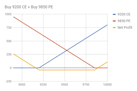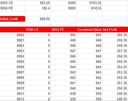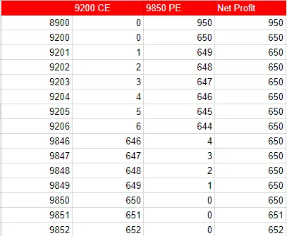 Net Profit is = Combined Value of (9200 CE + 9850 PE) – Initial Credit.