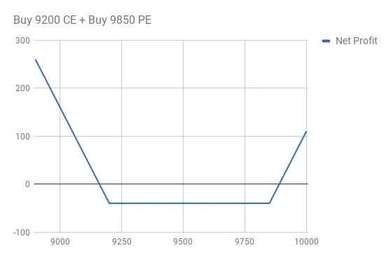 So in the case of breakeven points, 0 = Combined Value of (9200 CE + 9850 PE) – Initial Credit.