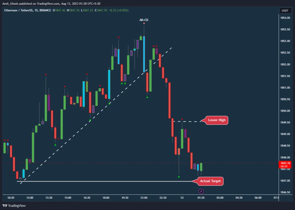 In this case, it turned out to take support in the “Actual Target” like. There can not be any trade here because both long and short have no good sight of probability.