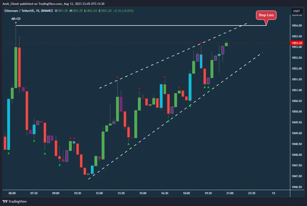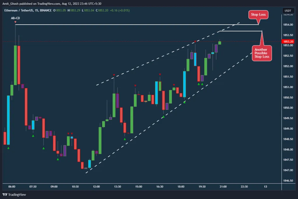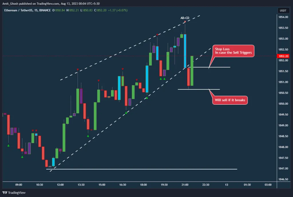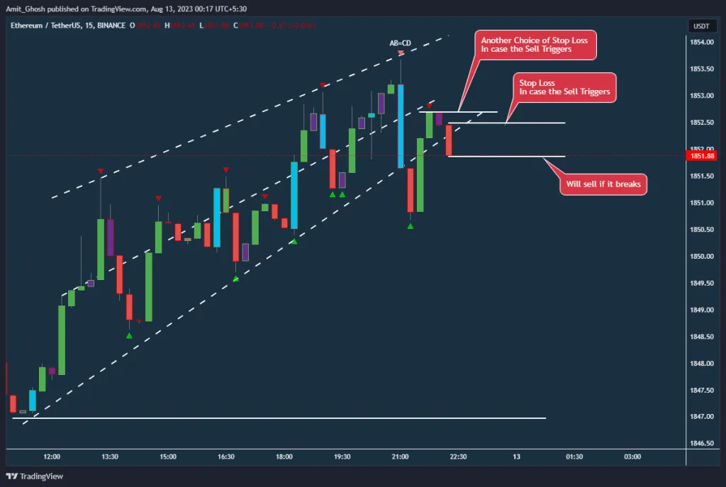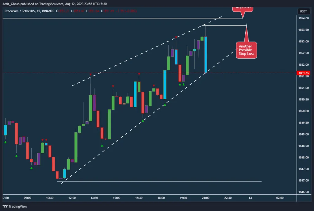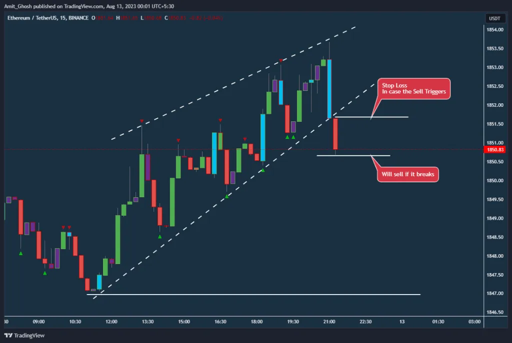 Understanding this psychology beforehand is what comes from intuition. You have to play the reverse psychology here. As every retail algos will keep a stop loss at the high of the parallel channel, it is hit first.