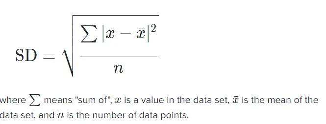 The formula for the standard deviation (SD) is