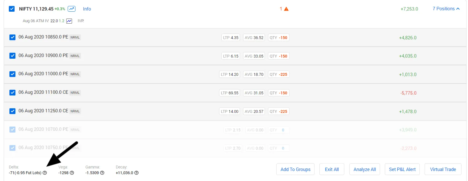 Here You can see the Delta and other greeks clean from live positions instantly.