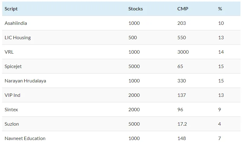 - Swap VRL with VGuard Industries or Dewan Housing. No logistics company. Though GST will impact but it is very the very tiny impact if you calculate and the market has already appreciated it. Anyways logistics is doomed. 14% allocation is very bad!